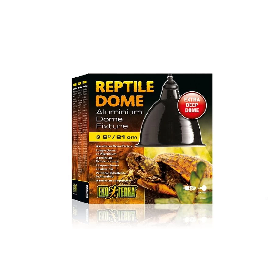 Cette lampe dôme de chez Exo Terra pour terrariums est munie d’un réflecteur aluminium en forme de dôme très long qui dépasse la surface de la plupart des ampoules.