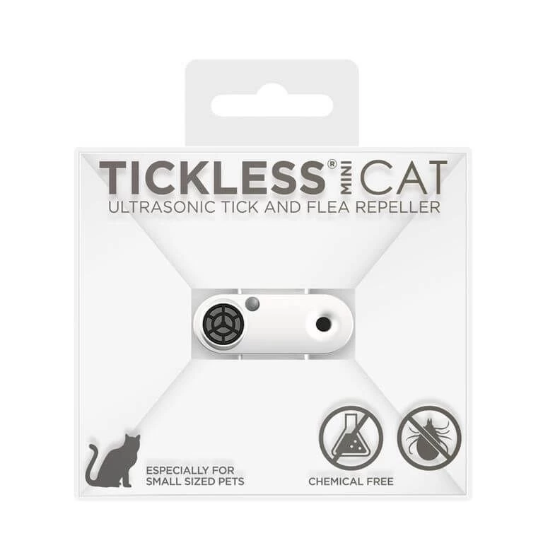 TICKLESS MINI Cat est le plus petit répulsif à ultrasons du marché. Sa conception de pointe émet des impulsions ultrasonores imperceptibles par les humains ou les animaux domestiques mais perturbantes pour les tiques et les puces, les faisant ainsi s’éloigner du dispositif.