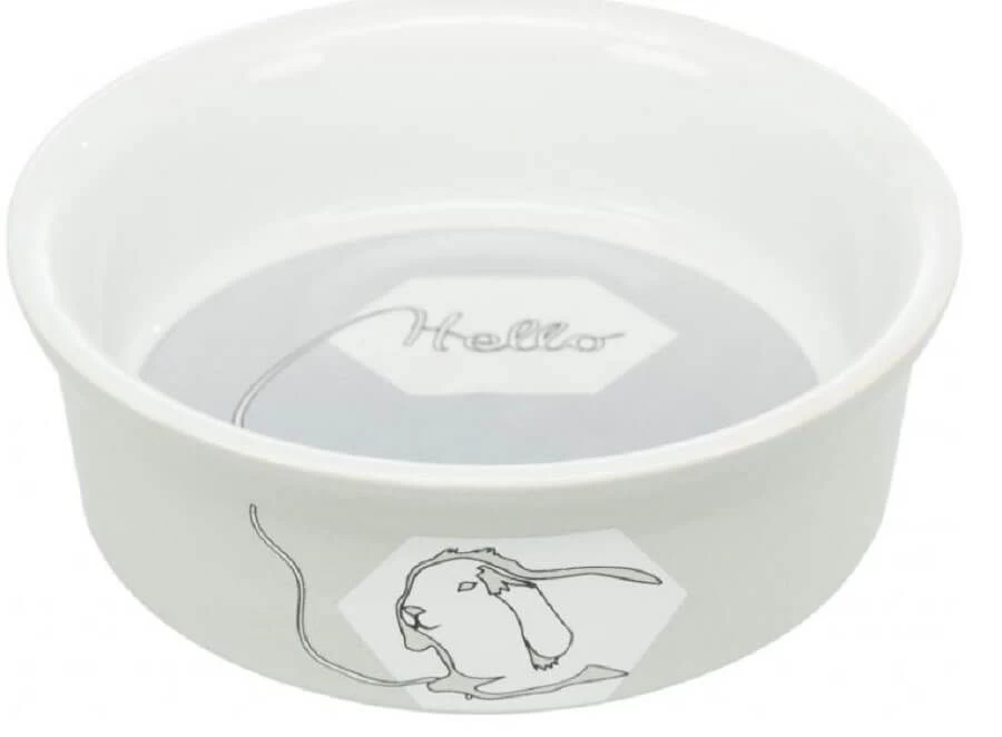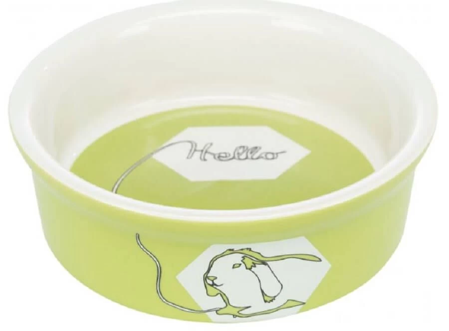 Offrez à votre lapin une gamelle en céramique pratique et originale floquée « Hello ». Votre petit animal appréciera sûrement ses couleurs vives !
