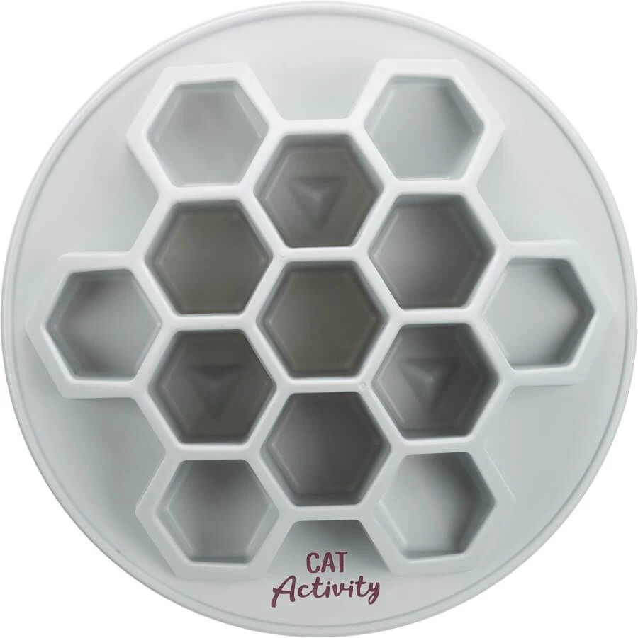 Vous n’aurez qu’à remplir les fentes en forme de nid d’abeille avec les friandises préférées de votre félin. A lui de les atteindre pour se régaler ! Vous pourrez aussi bien utiliser ce distributeur pour l’alimentation quotidienne avec de la nourriture sèche. Cet accessoire aide aussi à stimuler l’intelligence du chat.