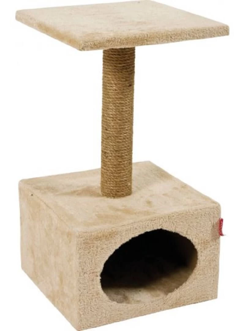 Il est constitué d’un poteau en chanvre et un petit coin douillet pour que votre chat puisse faire ses griffes et roupiller tranquillement.